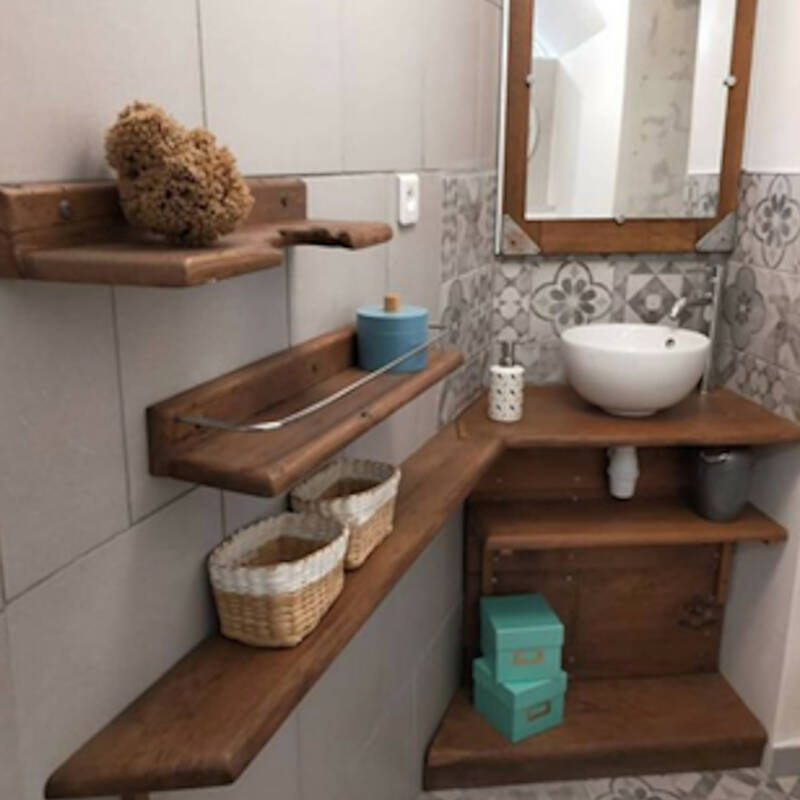 J'ai proposé d'utiliser le bois, qui provient de l'ancien plancher châtaignier des propriétaires, pour plus de cachet. Et rester en harmonie avec le charme de la maison.